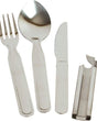 The Kombat UK NATO KFS Set is a versatile dining toolset designed for outdoor enthusiasts, campers, and survivalists. This set includes a knife, fork, and spoon, accompanied by a convenient can opener tool for added functionality.