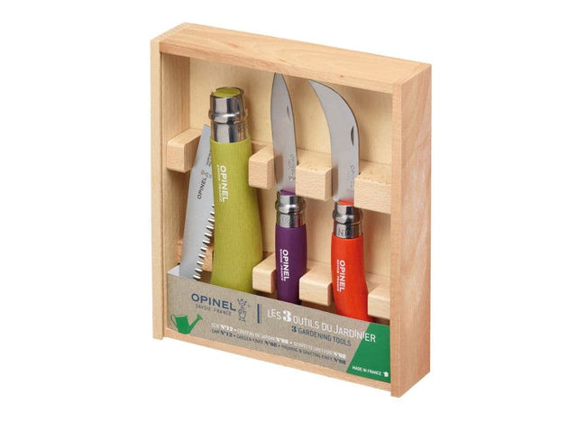Encased in a sophisticated wooden presentation box, the Opinel Gardener's Gift Set embodies a thoughtful and pragmatic gift suitable for gardeners of all proficiencies. Whether tending to plants, pruning shrubbery, or engaging in outdoor projects, this set caters to gardening enthusiasts who appreciate premium tools that seamlessly blend functionality with aesthetic charm.