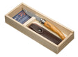 Indulge in the exquisite Opinel N°10 Olive Slim Knife with Sheath Gift Set, a meticulously curated masterpiece that pairs Opinel's iconic N°10 Olive Slim Knife with a rugged Alpine sheath, all elegantly housed in a charming wooden box a perfect present for any special occasion.