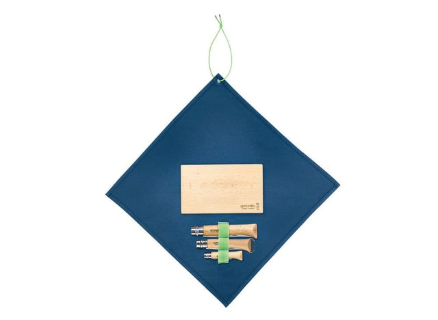 Crafted by Opinel, a celebrated French cutlery expert, this cooking ensemble boasts premium materials guaranteeing both resilience and practicality. The kit comprises a N°12 serrated knife for effortlessly slicing through an array of foods, a N°10 corkscrew bottle opener knife for popping open bottles, a N°06 pocket peeler for deftly peeling fruits and vegetables, a compact chopping board, and a soft microfiber cloth for impeccable cleaning.