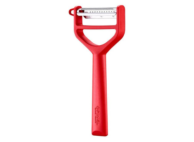 Elevate your kitchen experience with the dynamic Opinel T-Duo Polymer Peeler in Red. This essential tool is expertly crafted to revolutionise your food preparation routine. Featuring dual exceptional blades, including a precision micro-serrated blade for flawlessly peeling vegetables of all sizes and a dedicated blade for effortlessly creating delicate strips or julienne sticks, this peeler is an absolute kitchen essential. It even includes a specialized scoop for effortless potato peeling.