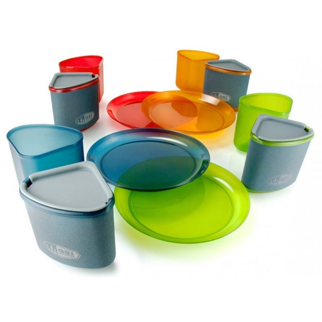 Discover the convenience and functionality of the GSI Outdoors Infinity 4 Person Compact Set, designed to cater to outdoor dining for up to four individuals. Crafted from BPA-Free polypropylene, this tableware set offers a perfect balance of compactness and practicality, making it an ideal choice for campers and adventurers.