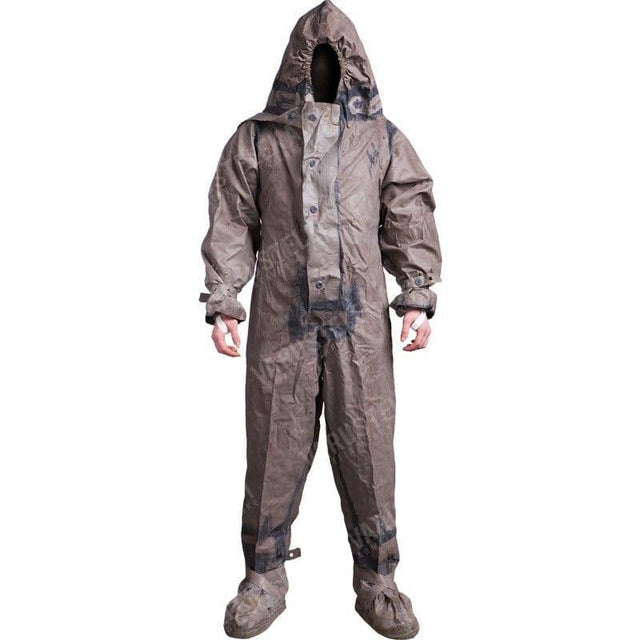 The perfect item for your collection of military surplus items, this East German NBC Suit is a great Cold War collectibles item, which is fully waterproof and includes built-in boots. The East German Full NBC Suit is fully waterproof and made from heavy duty rubber, making it perfect for emergency survival and virus protection. This full body suit includes built in boots, elastic wrists and hood for full protection.