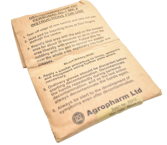 The Ex Military Decontamination Kit DKP1 MK2 are a tried, tested and essential item which has been used in the military for over 75 years. Designed to remove agents from surfaces, skin, clothing, footwear etc, this kit contains 3 sealed sachets of Fullers Earth which is quick and easy to apply. Providing you with personal protection from chemical and bodily fluid contaminants, this kit is a must have to add to your supplies.
