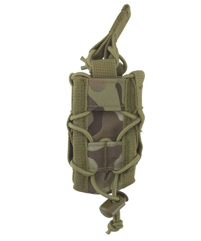 This Elite Grenade Pouch by Kombat UK is a versatile accessory designed to securely hold a variety of grenades. The pouch features Molle rear fixings, allowing for easy attachment to compatible gear such as tactical vests or backpacks. Its adjustable bungee retention strap ensures a snug fit for different grenade sizes, while the rapid open top release provides quick access during intense situations.