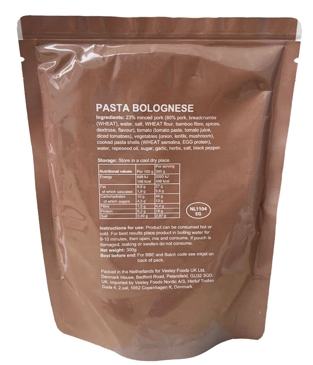 A family favourite which everyone is sure to enjoy, the British Military Ration Main Meal Pouch - Pork Pasta Bolognese 300g are great to add to your bug out bag, long term storage supplies or outdoor expeditions. These pouches were originally designed for the British military, meaning they are perfectly nutritionally balanced for survival purposes. You can eat them cold straight from the bag or alternatively boil in the bag for a quick and easy meal within minutes!