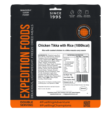Expedition Foods Freeze Dried Meal Pouch - Chicken Tikka With Rice - Various Sizes